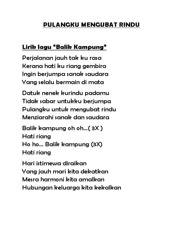 Download View Lirik Lagu Balik Kampungdoc as PDF for free. Kerna hatiku melonjak sama. Lirik Lagu Balik Kampung by Apak Pak Azad Atai Chombi Mizan Han Damia Along Thai.